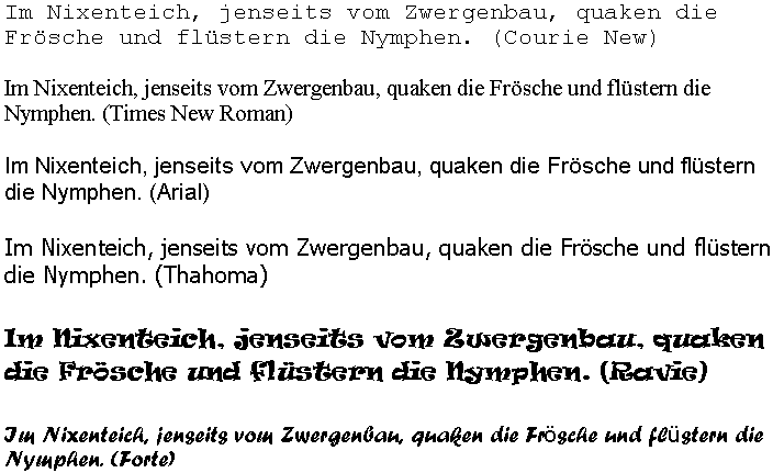 Nicht jeder Schriftzug ist auf jedem Betriebssystem und jedem Computer vorhanden.