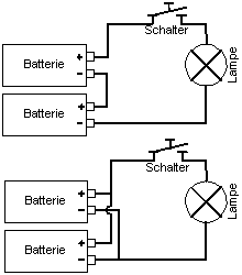 Was passiert, wenn ich zwei 9V Batterien hintereinander, also in Serie schalte? Ergibt das gleich viel, wie wenn ich diese beiden Batterien parallel zueinander schalte?
