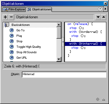 - In der Funktion "on (release) klicken Sie auf die Zeile "stop"