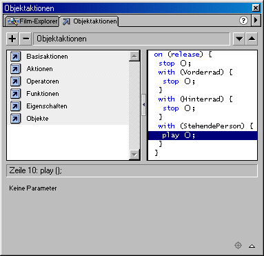 - Klicken Sie in der Funktion "on (release)" auf die Funktion "play();"