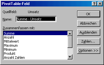 dem Symbol "Feldeinstellungen" aus der Symbolleiste "PivotTabelle"