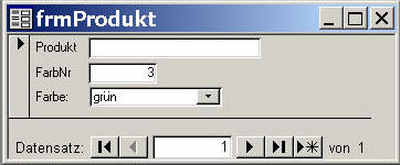 Beim Erfassen einer Farbe welche nicht im Dropdownfeld enthalten ist, soll der Anwender gefragt werden, ob die Farbe zu erfassen ist. Im „Ja-Fall“ soll Access den bereits ins Drop Down Feld eingegebenen Farbnamen in die Tabelle tblFarbe speichern und den neuen Wert in der Tabelle tblProdukt speichern.