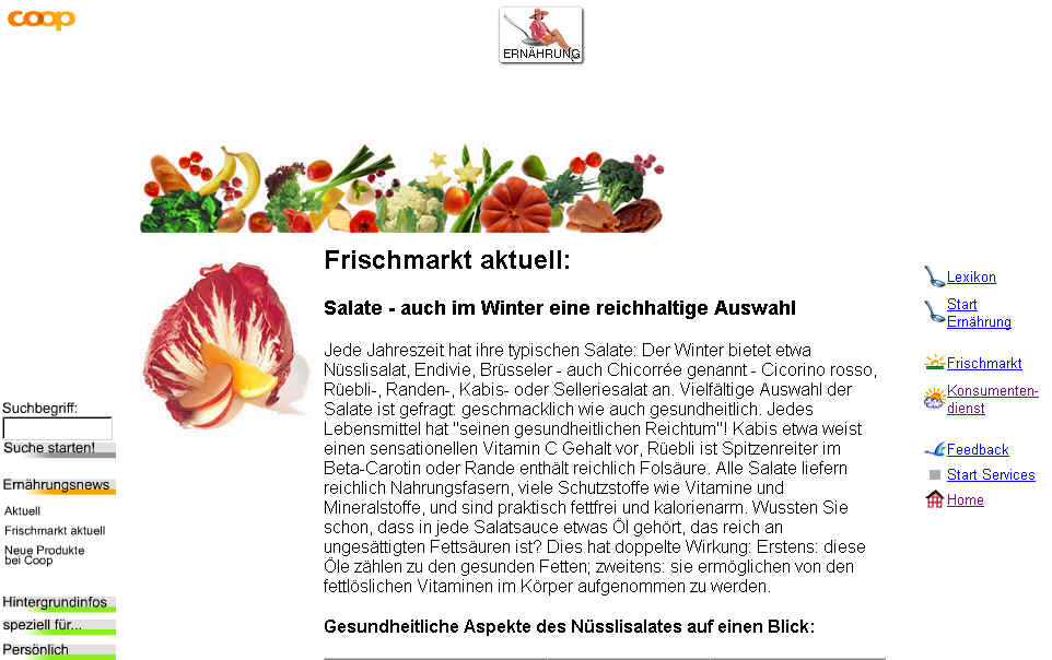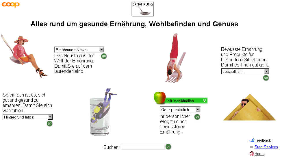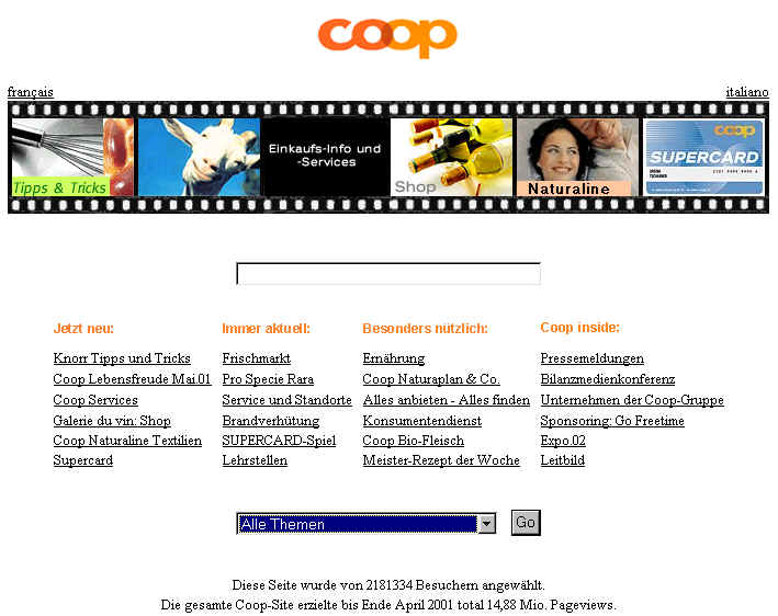 Die Einstiegsseite von Coop bietet eine grosse Auswahl von Verzweigungen.