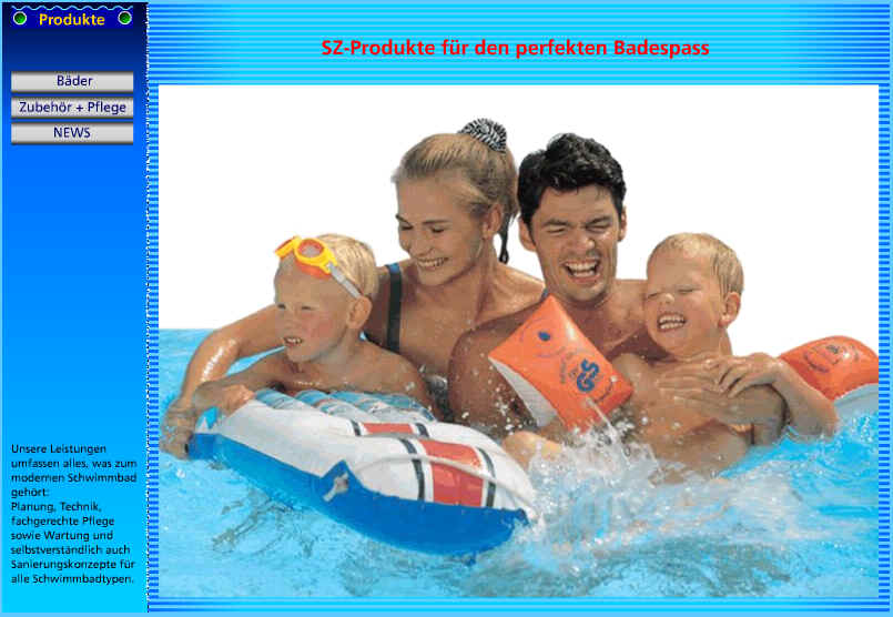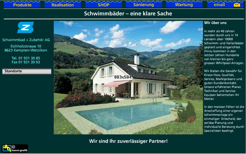 Die Einstiegsseite zeigt eine Villa auf einer grünen Wiese. Aus dem nichts wächst ein Pool. Hat uns gut gefallen. Wir wollen nun die Produkte sehen.