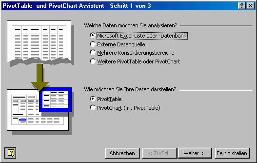 Ausführliche Informationen sind in der Excel-Onlinehilfe im Inhlat unter "Analysieren von Daten mit PivotTabelle-Berichten" verfügbar.