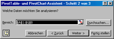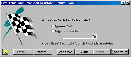 Schritt 3: Ziel der PivotTabelle bestimmen.